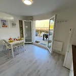 Overlooking the inner courtyard, the 32 m² Petite Cour Privee - A 1Minute A Pied De La Plage Merville-Franceville-Plage apartment is 4.8 km from the Riva Bella Beach in Merville-Franceville-Plage. One of the highlights of this 1-bedroom apartment is a terrace, which allows guests to take in garden views.